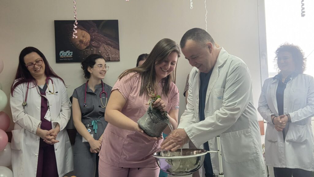 По традиция, на 21 януари в нашата болница бе спазен ритуалът, при който най-младият специалист измива ръцете на акушерката с