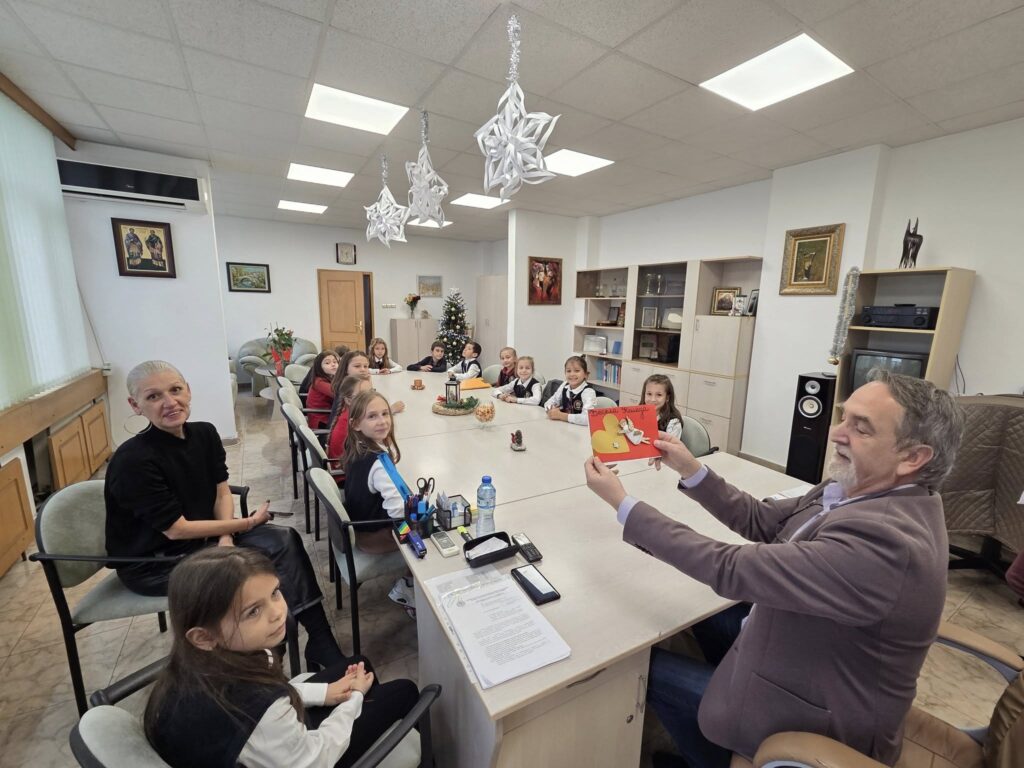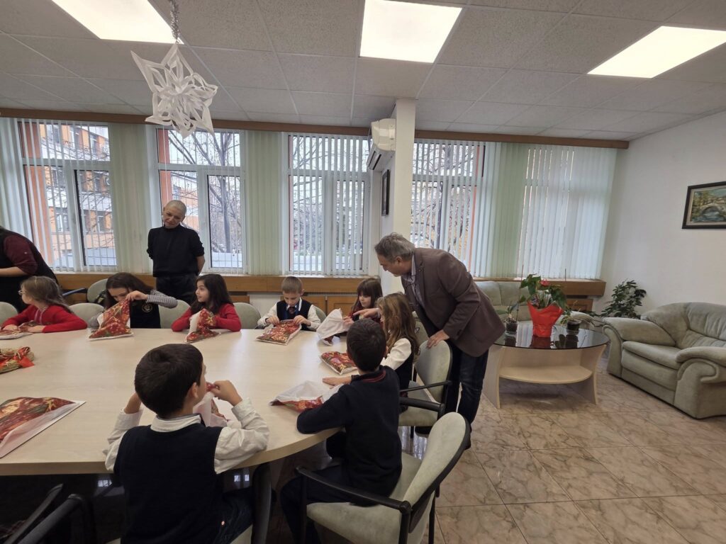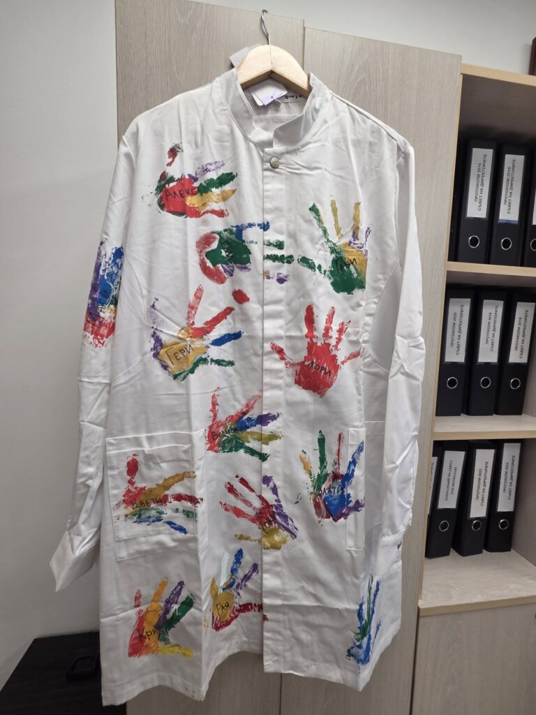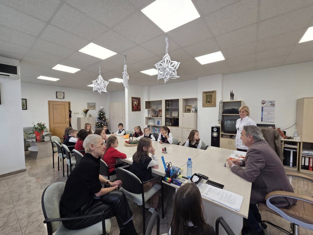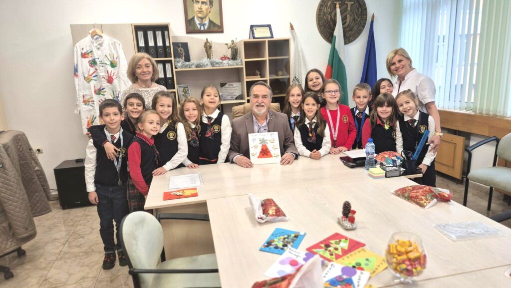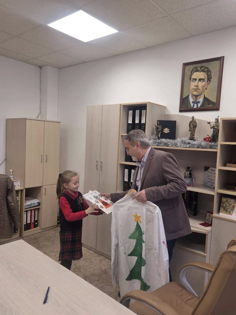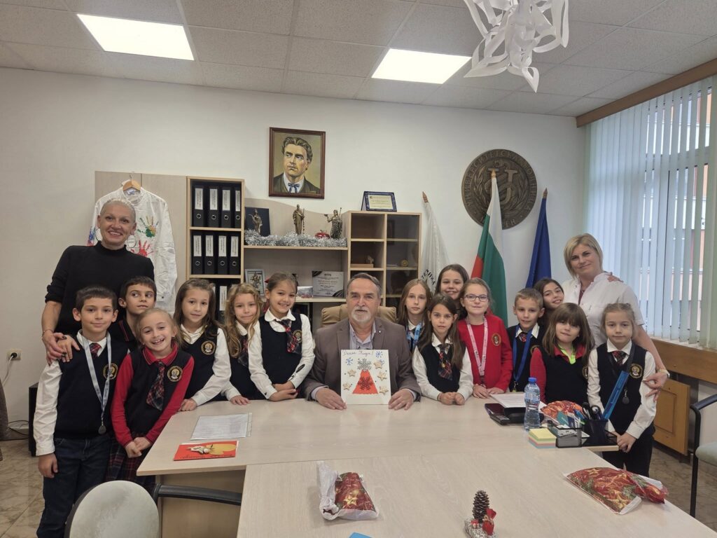 Учениците от 2 „а“ клас на НУ „Патриарх Евтимий“ – Плевен, заедно със своя класен ръководител г-жа Деница Тишкова, посетиха изпълнителния директор на УМБАЛ „Д-р Георги Странски“ доц. д-р Александър Вълков. В навечерието на светлите Коледни празници децата донесоха топлина и усмивки в болницата, подарявайки ръчно изработени картички и специално нарисувана лекарска престилка, украсена с техните малки ръчички.
